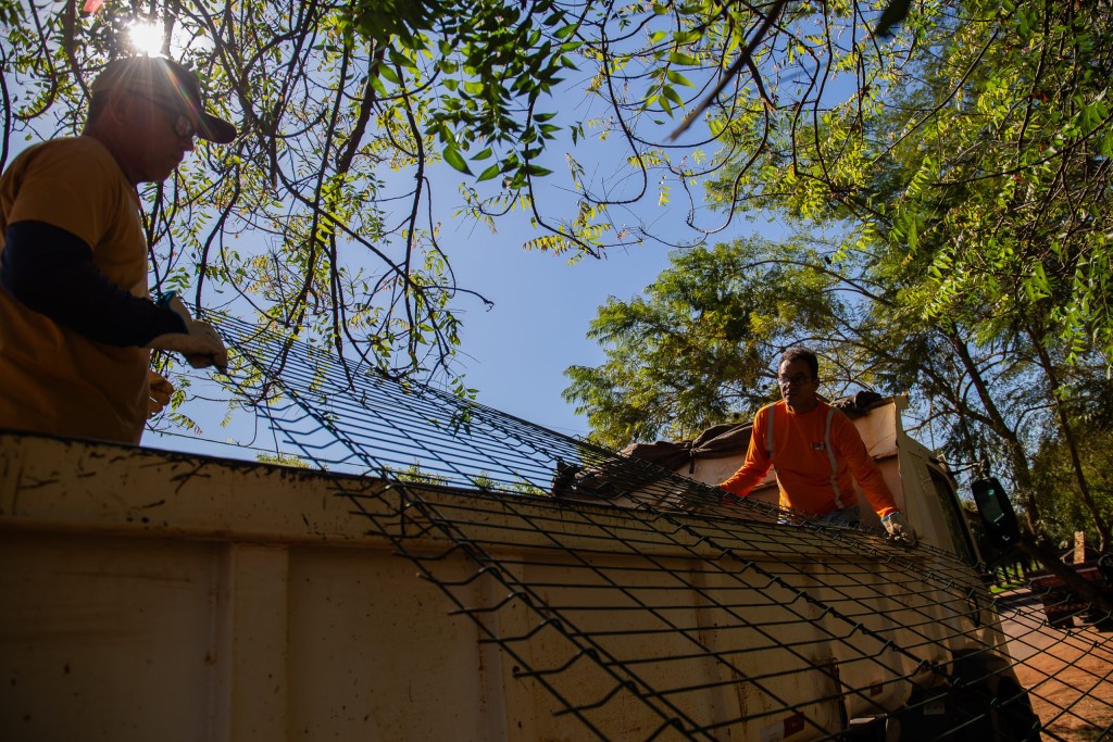 Grades retiradas das praças públicas começam a ser reaproveitadas no cercamento de espaços públicos